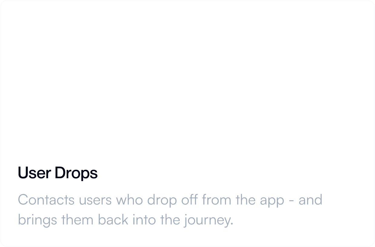 Instantly calls users who drop off, understands where they left off, re-engages them in their preferred language, completes tasks over the call or guides them back to the app, and routes to human teams when needed.